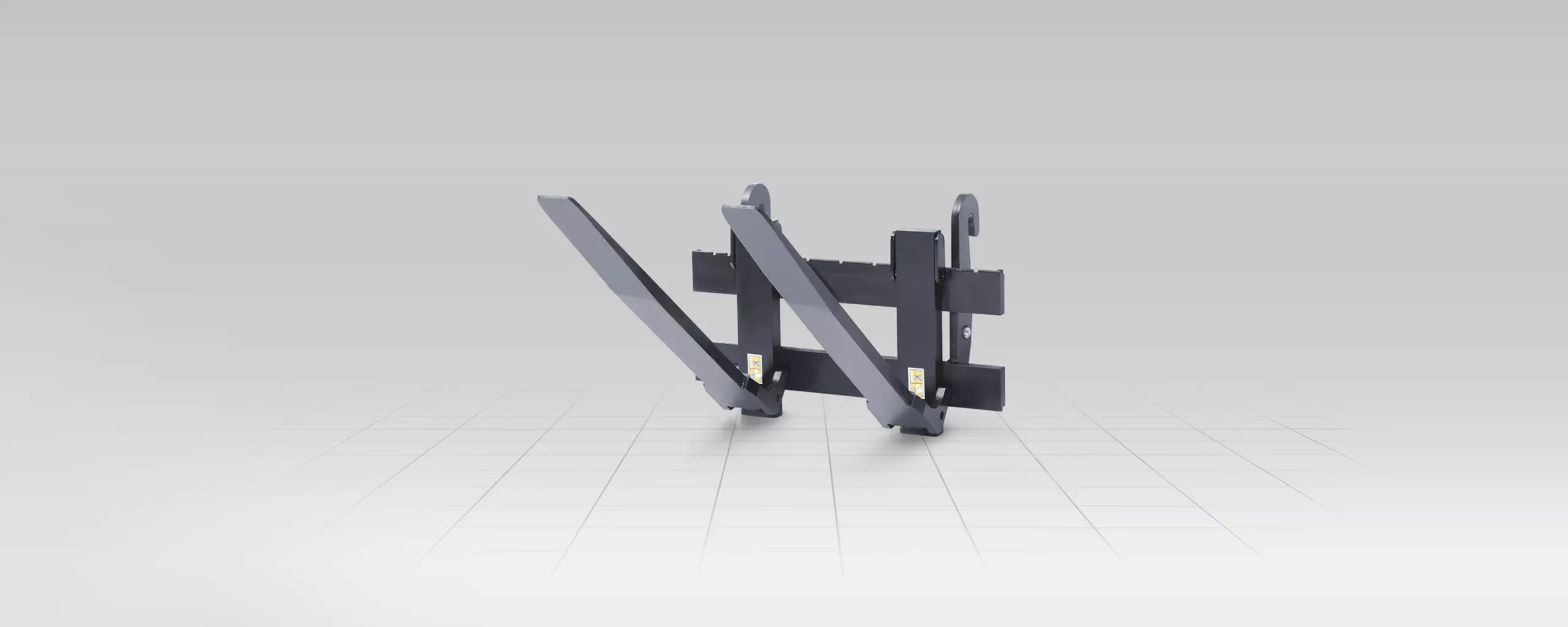Barra di protezione inclusa. Forca per pallet con due ganci sull'attacco per 12° più angolo di avvolgimento.